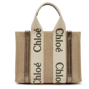 A refined small tote crafted from linen canvas and featuring webbing accents, adorned with embroidered Chloé branding.