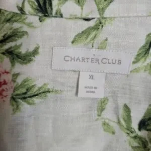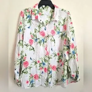 Women's Charter Club Floral Button Front Long sleeve Shirt 100% Linen XL Boho