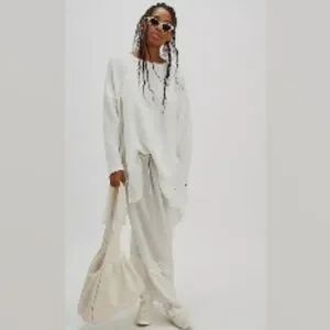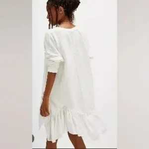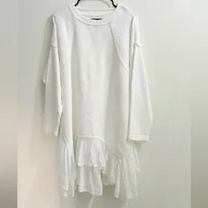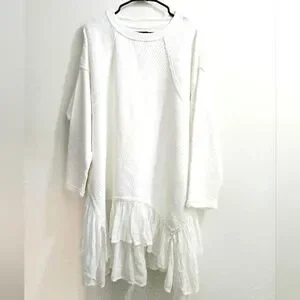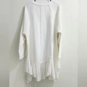 White Free People Poets Pullover Sweatshirt w/ ruffle hem NWOT