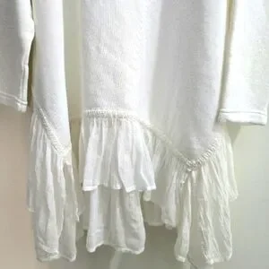 White Free People Poets Pullover Sweatshirt w/ ruffle hem size SP
