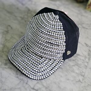 Nwt "Brand New" Elevate your accessory game with this Juicy Couture hat, featuring a dazzling array of silver rhinestones and faux pearls on a sleek black base. This statement piece combines the casual comfort of a baseball cap with a touch of glamour, making it perfect for any fashion-forward ensemble.