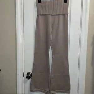 SHEIN Cream Boot Cut Fold Over Flare Knit Pants, Excellent Condition
