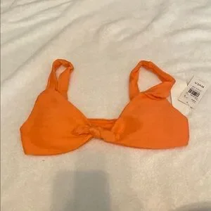 Vibrant orange bikini top by RVCA. Features a stylish knot detail. Perfect for beach days.