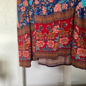 Step out in style with this stunning floral midi dress. The vibrant blue and orange design is perfect for any occasion. Enjoy the comfort and elegance of spaghetti straps.