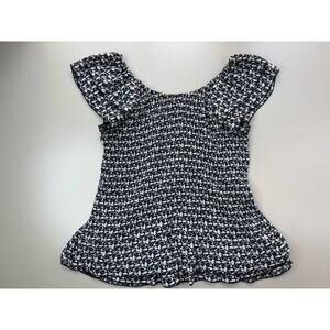 Vintage Y2K Babydoll Crinkle Top Women’s S Black White Ruffle Geometric Stretch