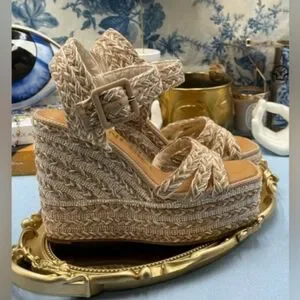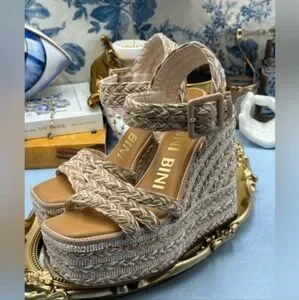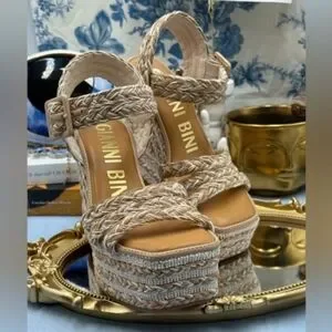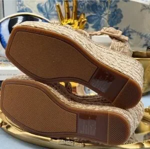NWOT Gianni Bini Tan Wedge Espadrilles with Woven Braided Straps And Beaded