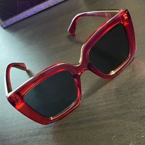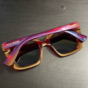 Retro style square-shaped red sunglasses, "Maia" sunglasses by Steve Madden
