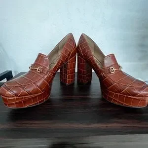 Sam Edelman Brown Platform Shoes with Croc Pattern