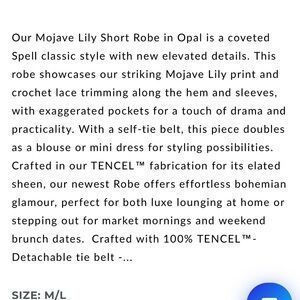πβ£οΈ Spell Mojave Lily Short Robe Sz M/L Color: Opal NWT!! β£οΈπ