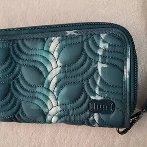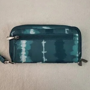Lug SHIBORI TEAL Splits XL RFID Wristlet Wallet EUC