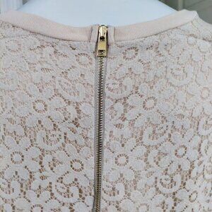 Ann Taylor Womens Beige Lace Front Twee Pullover Top Back Zipper Closure M No issues to state