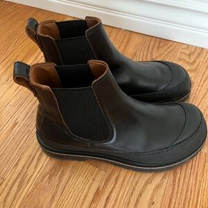 Like new, excellent condition. Size 41. I love these boots but they were too big. Worn two times. Last three photos show the actual boots. Sleek black leather ankle boots. Slip-on style with elastic sides. Durable sole for comfort.
