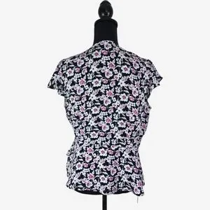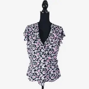 Floral Wrap Blouse Womens Medium Black V Neck Banana Republic