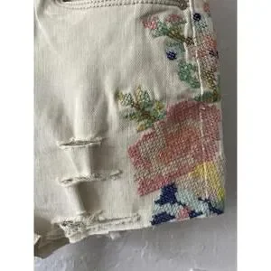 Get your summer style on point with these trendy distressed denim shorts from Blank NYC. Featuring colorful embroidered details on both sides, these shorts add a unique touch to any outfit. Perfect for casual outings or beach days, they offer a comfortable fit and stylish flair. Key features include: - Distressed hem design for a trendy look - Colorful embroidered floral patterns for a pop of personality - Classic five-pocket style for practicality - Perfect for pairing with crop tops, tanks, or a casual tee - Lightweight fabric ideal for warmer weather. Elevate your wardrobe with these must-have shorts, perfect for any occasion!