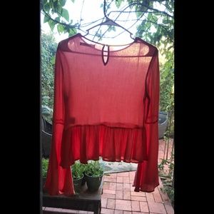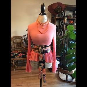 GLAMOUROUS Coral Pink Textural Bell Sleeve Top. Great w/ Coral Jewels! S…