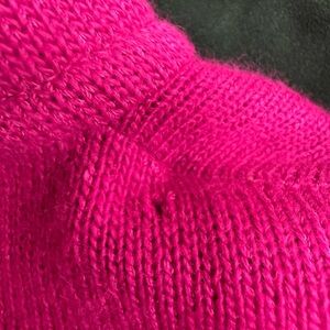 This classic pink dress by St. John features long sleeves with a classic crew neck & lovely pink & gold buttons. Perfect for casual or work settings. The dress is designed with a relaxed fit and a gathered waistline, offering a flattering silhouette. Its soft fabric ensures comfort and style throughout the day. (There is a small hole on back as reflected in photo).
