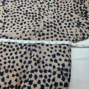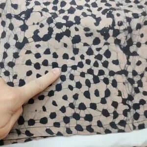 Our Snakebite print has dynamic irregular warm black dots scattered across a camel colored background.