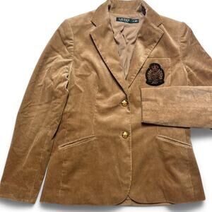 Lauren Ralph Lauren 90s Brown Tan Corduroy Bullion Crest Blazer Jacket Womens 10