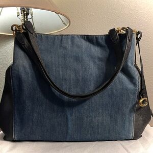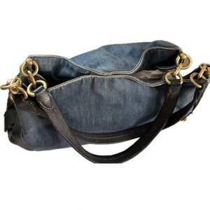 Excellent Denim / Leather Coach Satchel w/ 3 Divided Sections $425 Well Made!