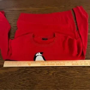 Talbots Supersoft Penguin Crewneck Sweater Red Size Medium Cashmere Blend Preppy