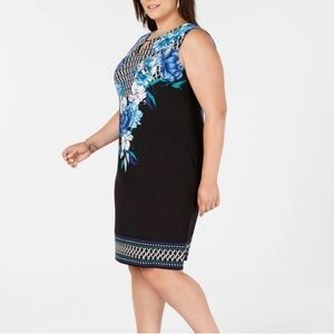Women Dress JM Collection Keyhole Blue Floral Sheath Dress Sleeveless Midi Dress