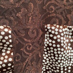 Stylish brown lace camisole with white polka dots. Perfect for layering or wearing alone.