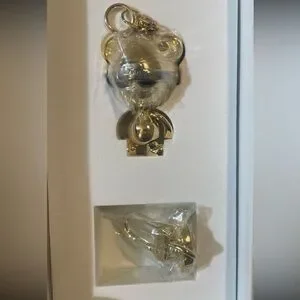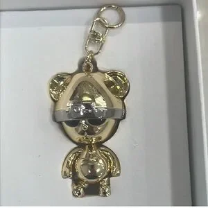 Very rare stylish bear keychain in gold and silver. Perfect accessory for bags or keys.