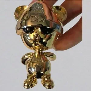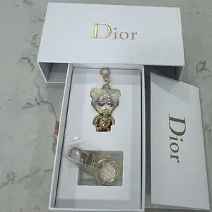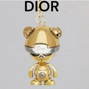 Dior INLEX Metallic Teddy Bear Keychain Bag Charm Gold/Silver Tone Metal