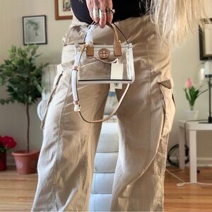 NWT TORY BURCH ELLA MINI CLEAR & LEATHER CROSSBODY TOTE