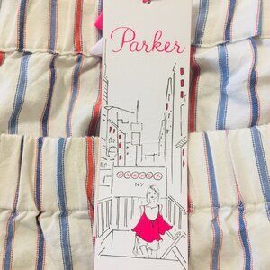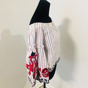 PARKER Dane Off Shoulder Embroidered 3/4 Sleeves Stripe Scallop Blouse XS NEW