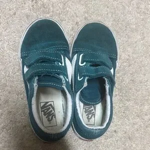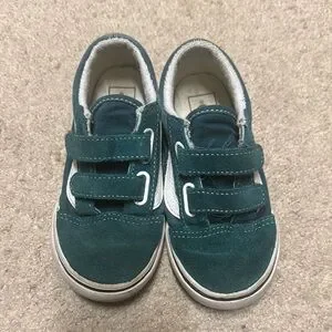 These Vans sneakers feature a vibrant blue color with two convenient velcro straps for easy wear. The classic white Vans side stripe and midsole add a touch of timeless style, while the low-top design ensures comfort and flexibility. Perfect for casual outings, these sneakers embody the iconic Vans aesthetic with their durable construction and signature waffle sole.