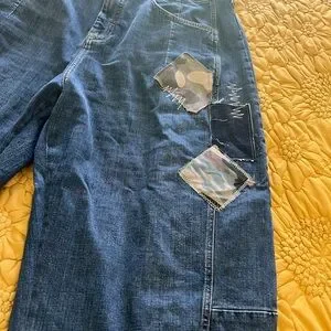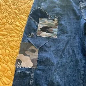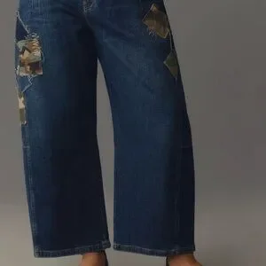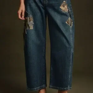 Pilcro Medium Denim Barrel Jeans with Camo patches