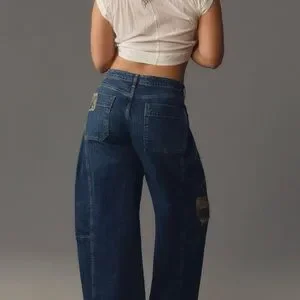 These Pilcro jeans offer a stylish ankle barrel design with tasteful camo patches. Crafted with a sturdy denim texture, they provide a comfortable fit and a modern look. Perfect for adding a touch of color to your everyday wardrobe.