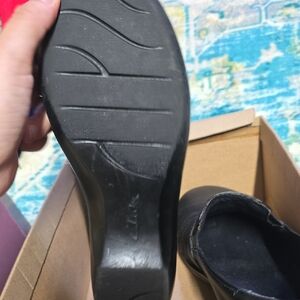 does appear to be very lightly worn/tried on. Elegant black loafers by Clarks. Ideal for everyday comfort.
