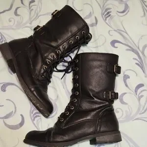 Step out in style with these chic black lace-up boots. Perfect for any occasion, they offer both comfort and fashion.