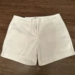 These J. Crew Bermuda shorts in a crisp white color are perfect for a relaxed summer look. 5”Made from lightweight material, they offer a comfortable fit with a clean, simple design. Ideal for casual outings, these shorts provide a timeless style that hits just above the knee.