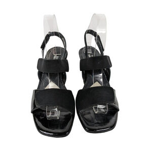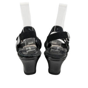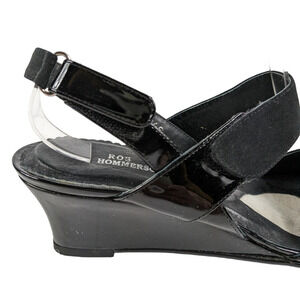 Ros Hommerson Sandals 8.5 Black Patent Leather Strappy Wedges Slingback Shoes