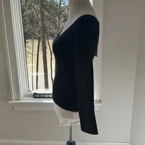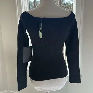 NWT TUCKERNUCK Black Knit Nicola Long Sleeve Off The Shoulder V Neck Top, Large