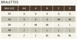 Available in small, medium and large. Shelf 90% Nylon 10% Spandex Lining 95% Polyester 5% Spandex. The size chart comes from the manufacture.