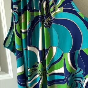 Vibrant Blue and Green Patterned halter neck dress TRINA TURK size L