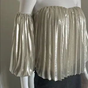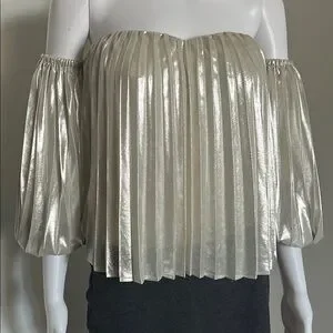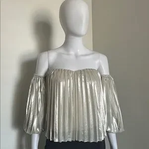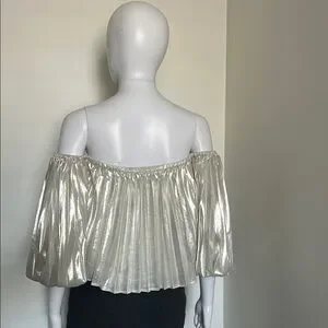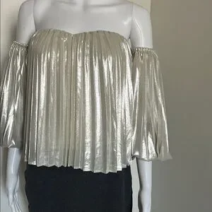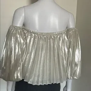 Express, Women’s Size M Metallic Pleated Elegant Off-Shoulder Ballon Top