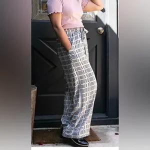 NWT LuLaRoe Black & White Checkered Houndstooth Plaid Wide Leg Pants WITH Pocket
