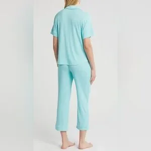 PJ Salvage Couture Rib Scallop Trim Aqua Pajama Set 2 Piece NWT L