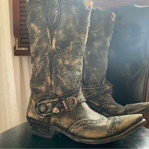 Old Gringo Harness Boots. Style is a distressed black/tan wash.