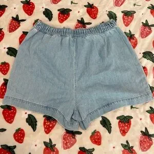 Experience the perfect blend of style and comfort with these Madewell blue jean shorts. Crafted from soft, light-wash denim, they feature a relaxed fit and an elastic waistband for easy wear. Ideal for casual summer days, these shorts offer a timeless look with their classic design.