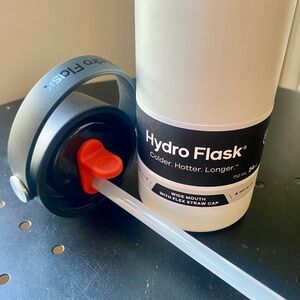 Flip it and sip it with the Hydro Flask 24 oz Wide Mouth Bottle With Flex Straw Cap. With a comfortable, flexible handle, the closeable, leakproof straw cap is easy to open and close with one hand, for on-demand hydration. Double-wall insulation keeps drinks cold up to 24 hours for cool refreshment. The slim design fits most cupholders, easily fits ice cubes and is dishwasher safe.
