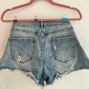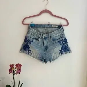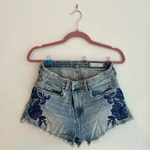 Blank NYC Light Blue Jean Shorts with Dark Blue Embroidery