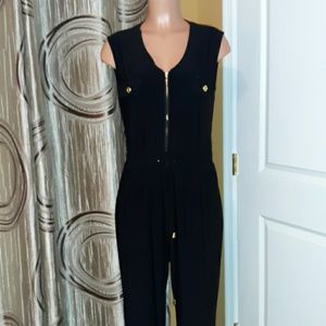 New, never worn Nina Leonard black jumpsuit. Zipper in front with waist has string that cinches in. 2 pockets in front on top not real. Only for accents. Buttons, zipper and end of string are gold. If you are tall this would be a great pant set for you. The mannequin is about 5'10 and the pants go to the floor.