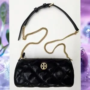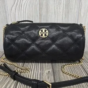 NEW WITHOUT TAG TORY BURCH WILLA BARREL CROSSBODY HANDBAG COLOR: BLACK QUILTED LEATHER GOLD-TONE HARDWARE ADJUSTABLE CROSSBODY STRAP INTERIOR: 1 SLIP POCKET
