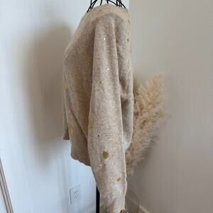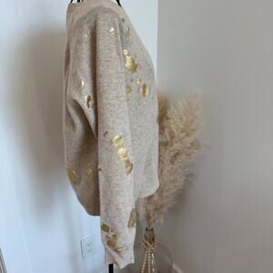 Brodie Fine Cashmere Sweater Size S Beige with Gold Paint Splatter Design